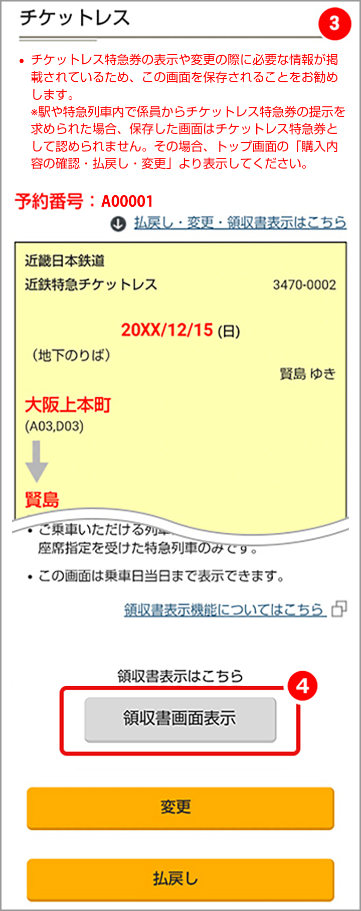 ※予約番号はチケットレス画面または購入(変更)結果画面に記載しています。